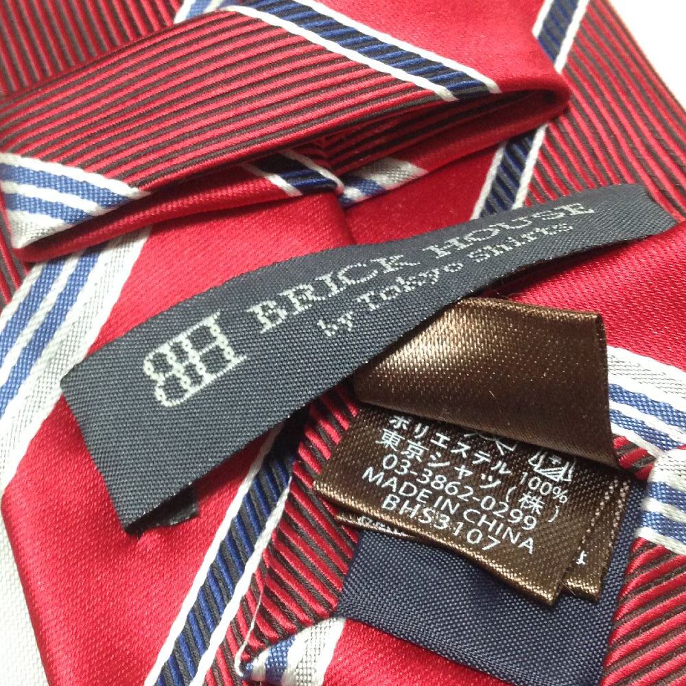 ブリックハウス BRICK HOUSE 良品 微光沢 ネクタイ 斜めストライプ レジメンタル レッド系 赤系 A-008358