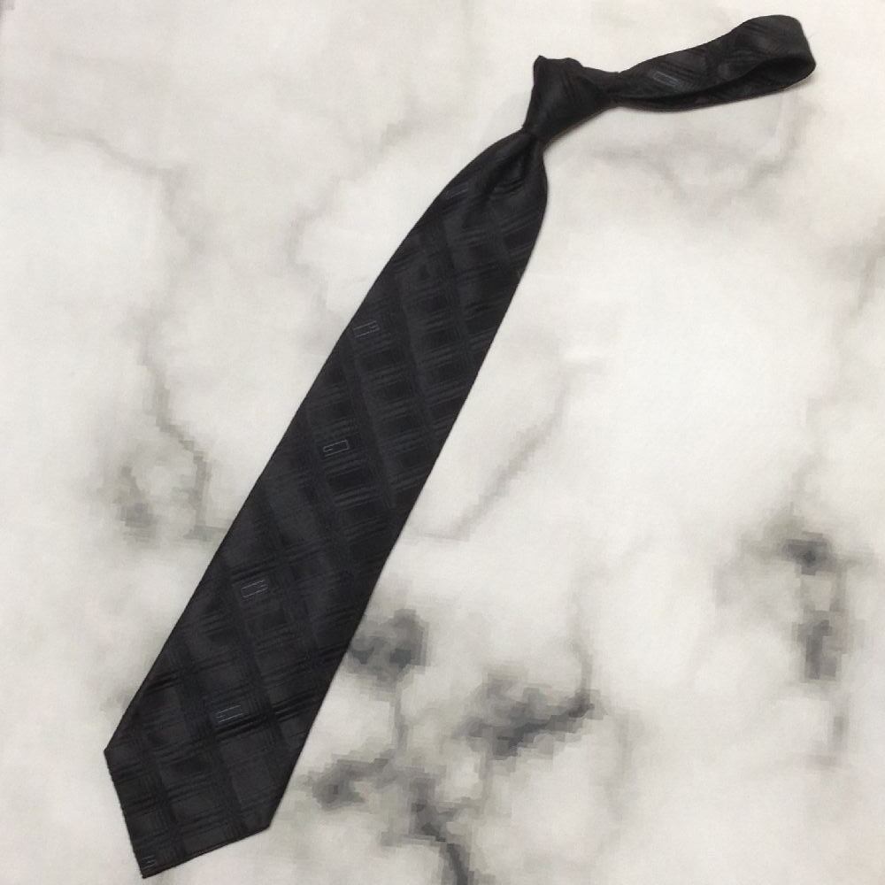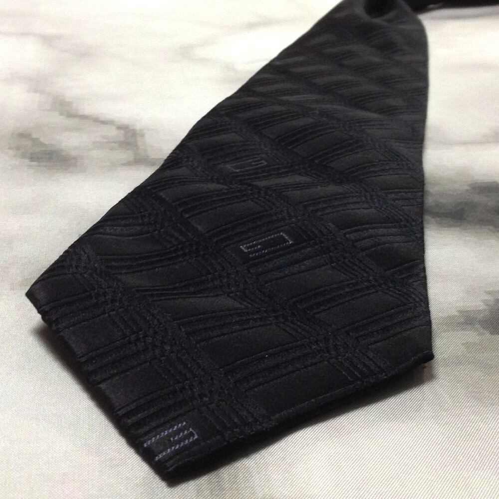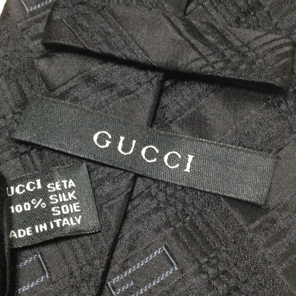 グッチ GUCCI 良品 微光沢 ネクタイ イタリア製 シルク100% パターン柄 黒系 ブラック系 B-008363