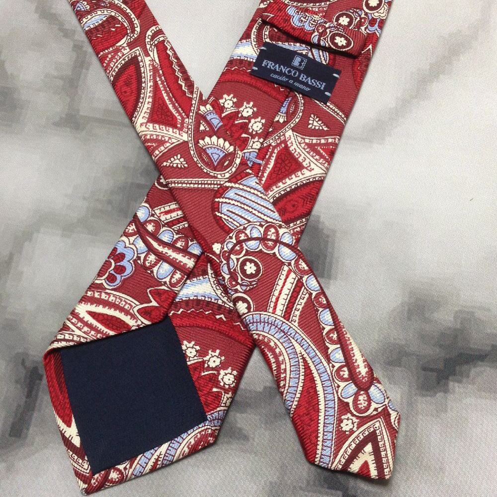 フランコバッシ FRANCO BASSI 微光沢 ネクタイ シルク100% ペイズリー柄 レッド系 赤系 B-008364
