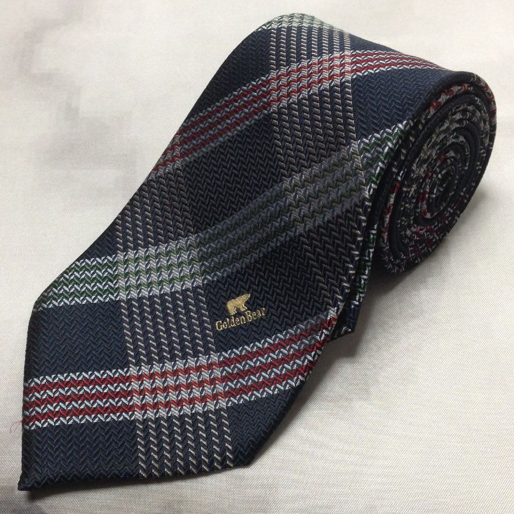 ゴールデンベアー GoldenBear 美品 未使用品 微光沢 ネクタイ シルク100% パターン柄 ミックス B-008376