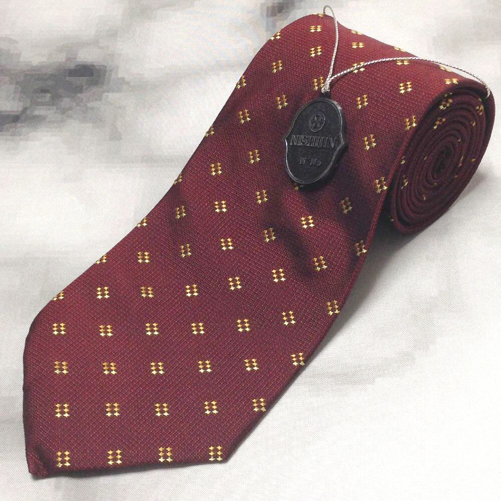 西陣織 美品 新品未使用タグ付 ネクタイ 日本製 シルク100% パターン柄 ワインレッド系 赤系 B-008383