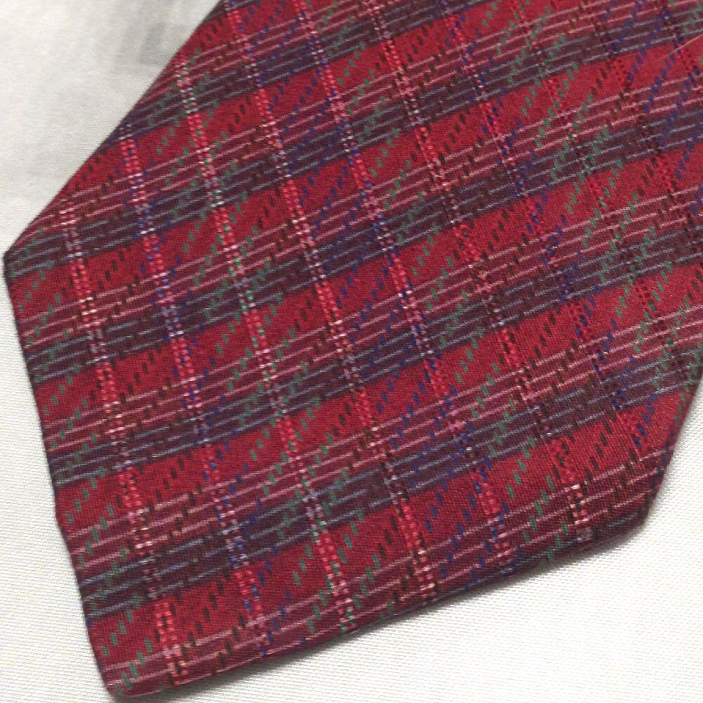 ルイフェロー LOUIS FERAUD 美品 新品未使用タグ付 ネクタイ 日本製 シルク100% チェック柄 ミックス B-008386