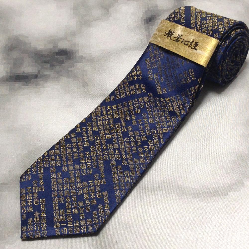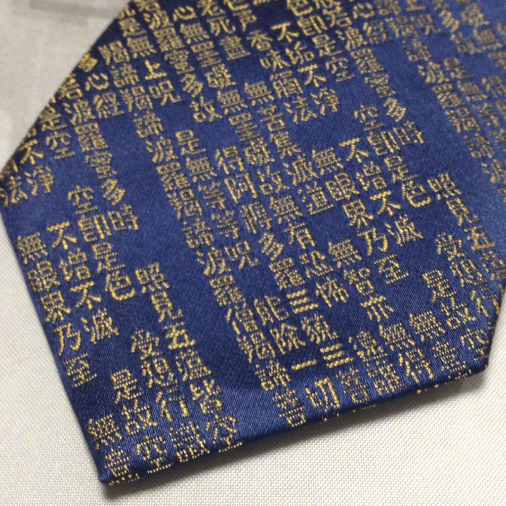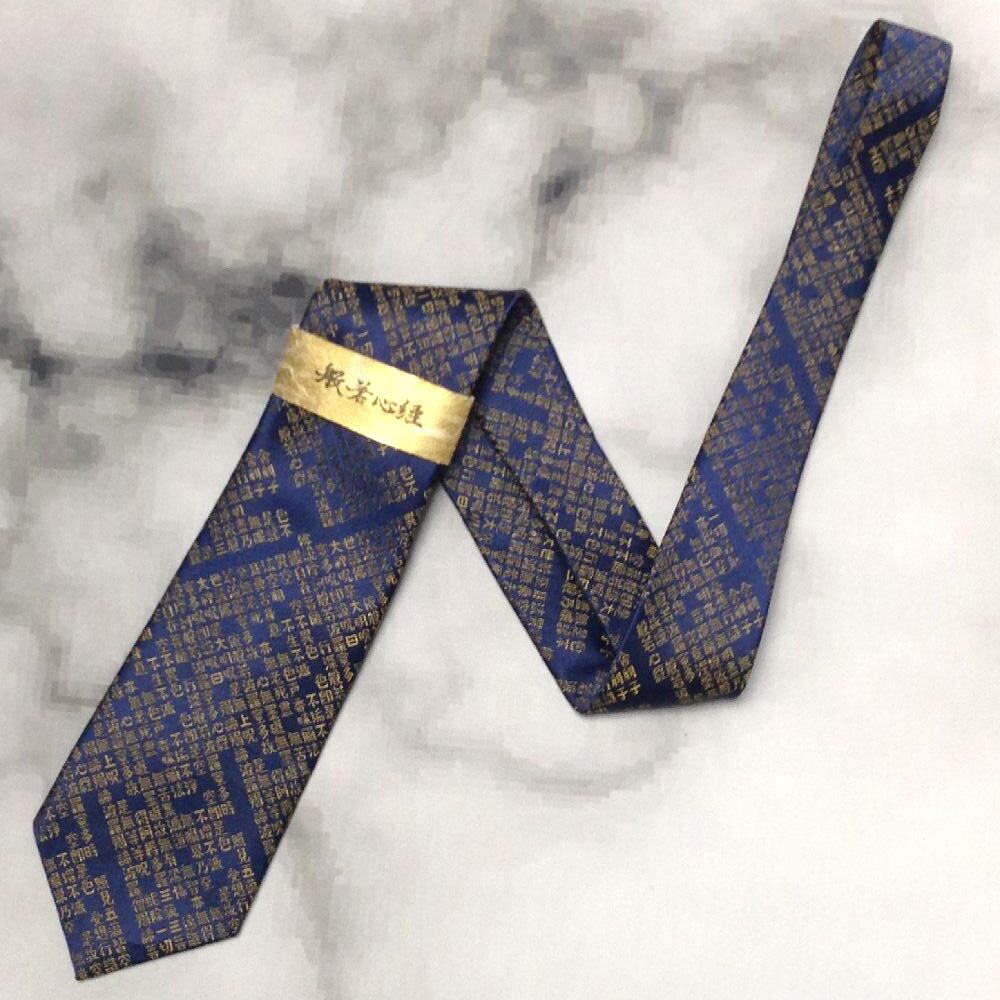 高級 西陣織 美品 新品未使用紙タグ付 微光沢 ネクタイ 日本製 般若心経 冠婚葬祭 礼装 濃紺系 ネイビー系 B-008409