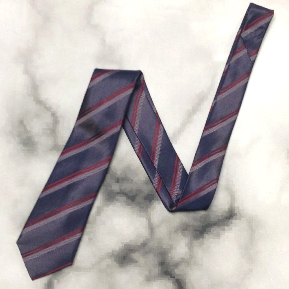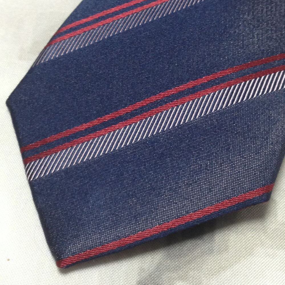 スーツセレクト SUIT SELECT 美品 微光沢 ネクタイ 斜めストライプ レジメンタル 濃紺系 ネイビー系 B-008433