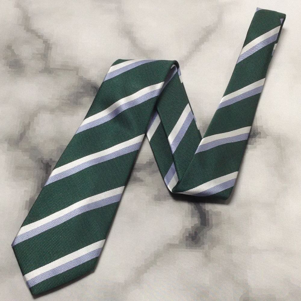 スーツセレクト SUIT SELECT 美品 未使用品 微光沢 ネクタイ 斜めストライプ レジメンタル 緑系 グリーン系 B-008440