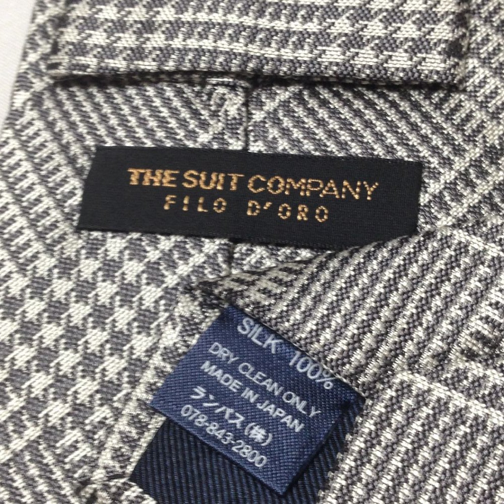スーツカンパニー THE SUIT COMPANY FILO DORO 美品 未使用品 微光沢 ネクタイ 千鳥 チェック柄 白黒 C-008465
