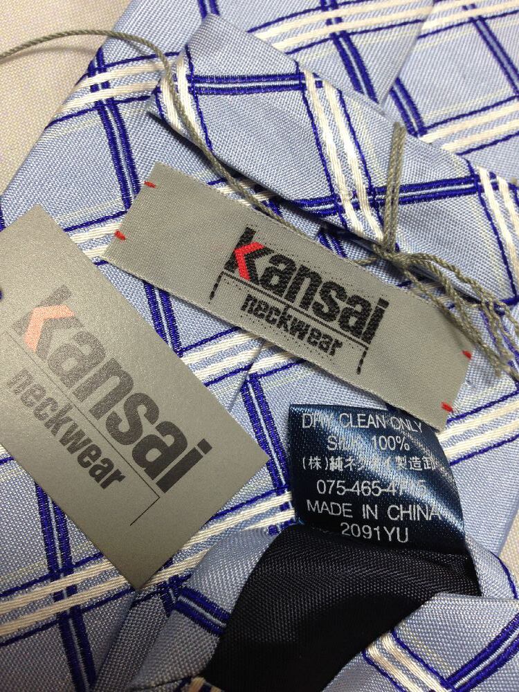 Kansai neckwear 美品 新品未使用タグ付 微光沢 ネクタイ シルク100% パターン柄 青系 ブルー系 C-008470
