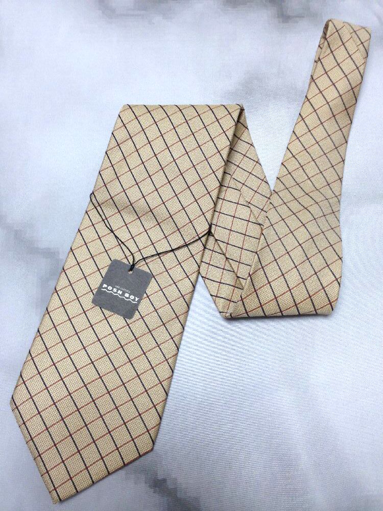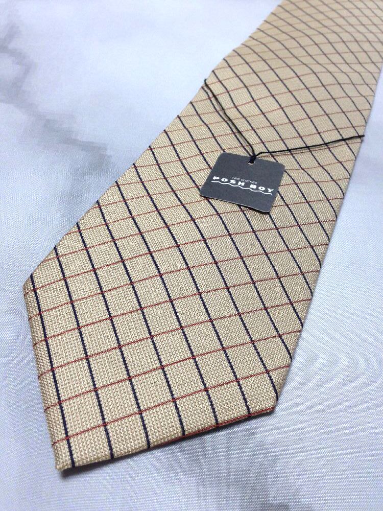 ポッシュボーイ POSH BOY 美品 新品未使用タグ付 微光沢 ネクタイ 日本製 シルク100% 格子柄 ミックス C-008471