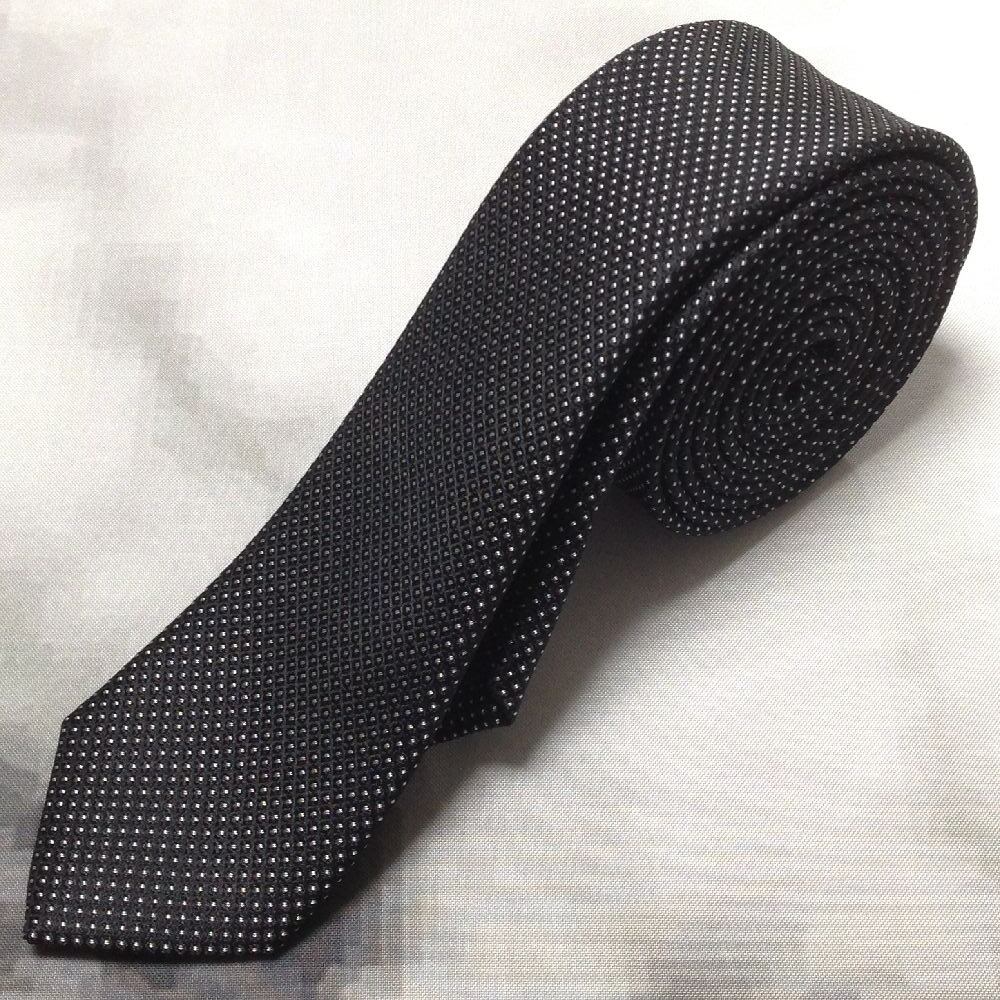 ザラ ZARA 美品 未使用品 微光沢 ネクタイ ドット柄 ナロータイ 黒系 ブラック系 C-008515
