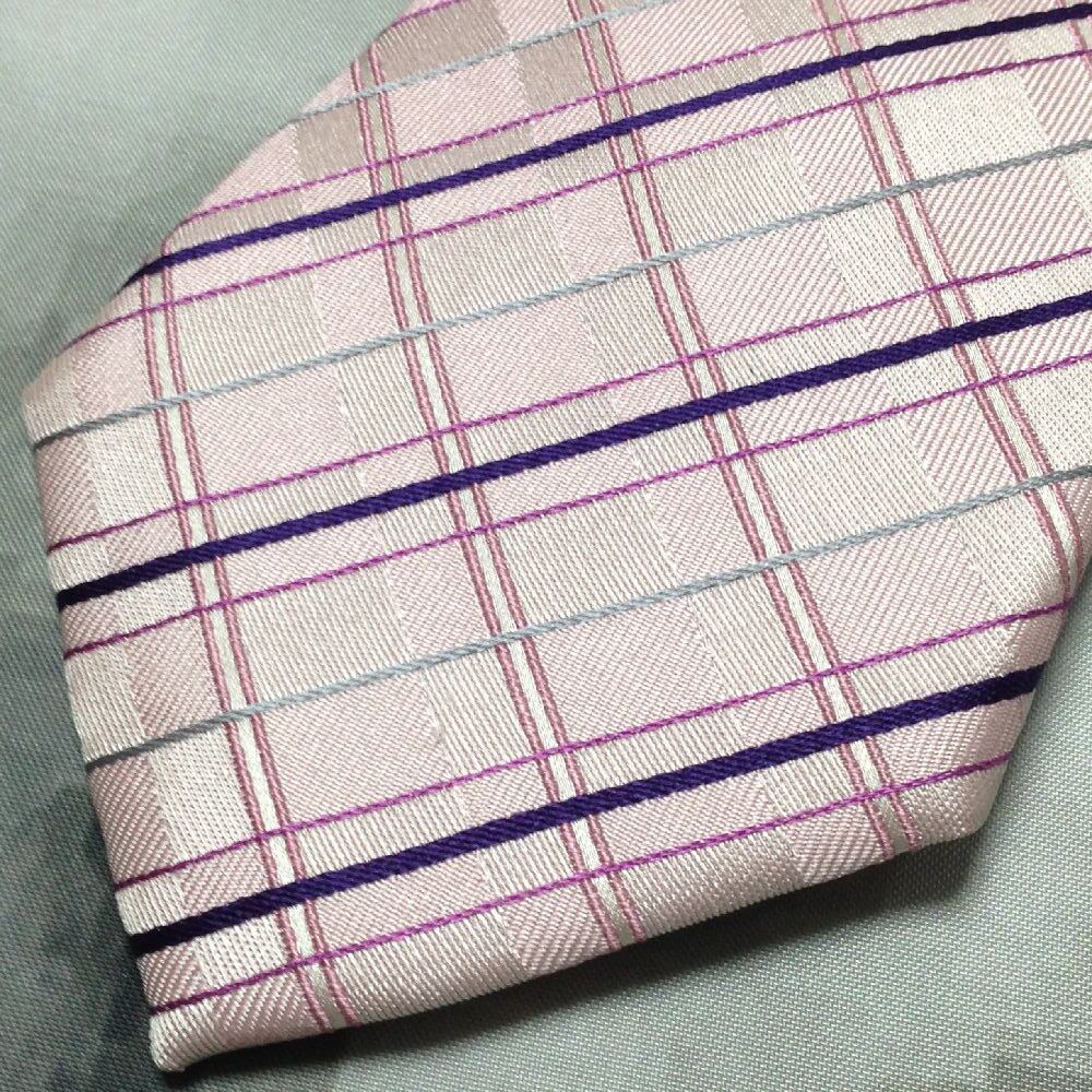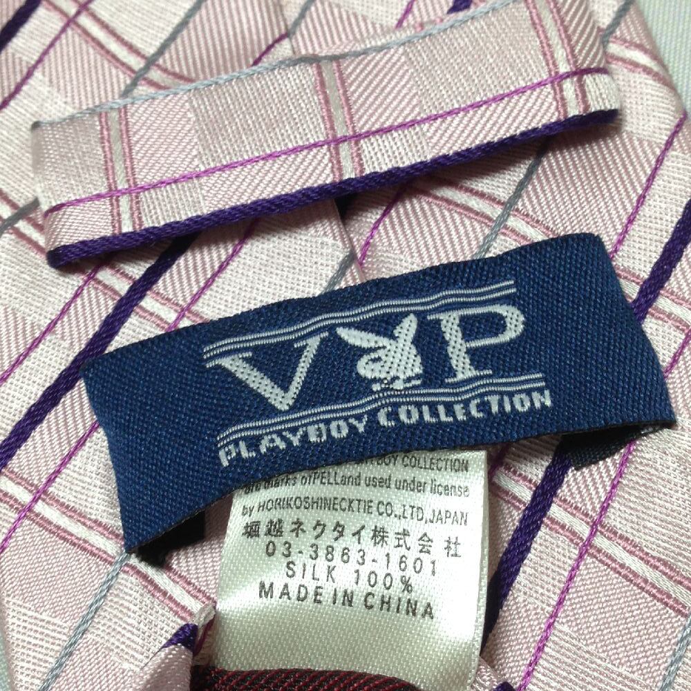 プレイボーイ VIP PLAYBOY 美品 微光沢 ネクタイ シルク100% 格子柄 ミックス C-008517