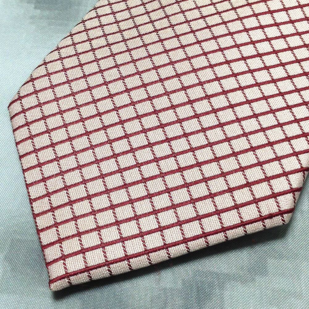 パーフェクトスーツファクトリー PSFA P.S.FA 美品 未使用品 微光沢 ネクタイ シルク100% 格子柄 ピンク系 C-008525