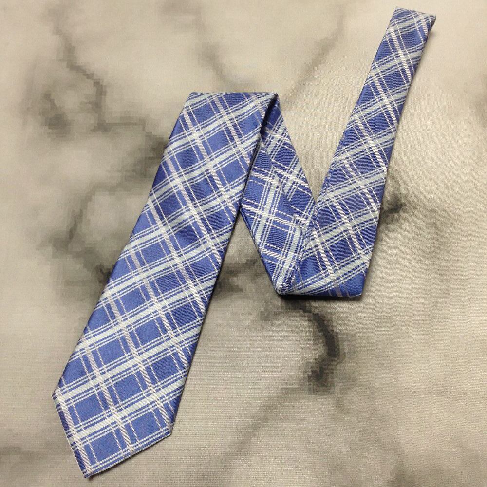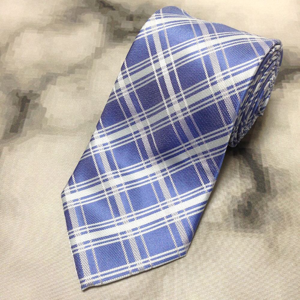 シンプルフレーズクラバット SIMPLE PHRASE CRAVAT 美品 微光沢 ネクタイ チェック柄 青系 ブルー系 C-008527