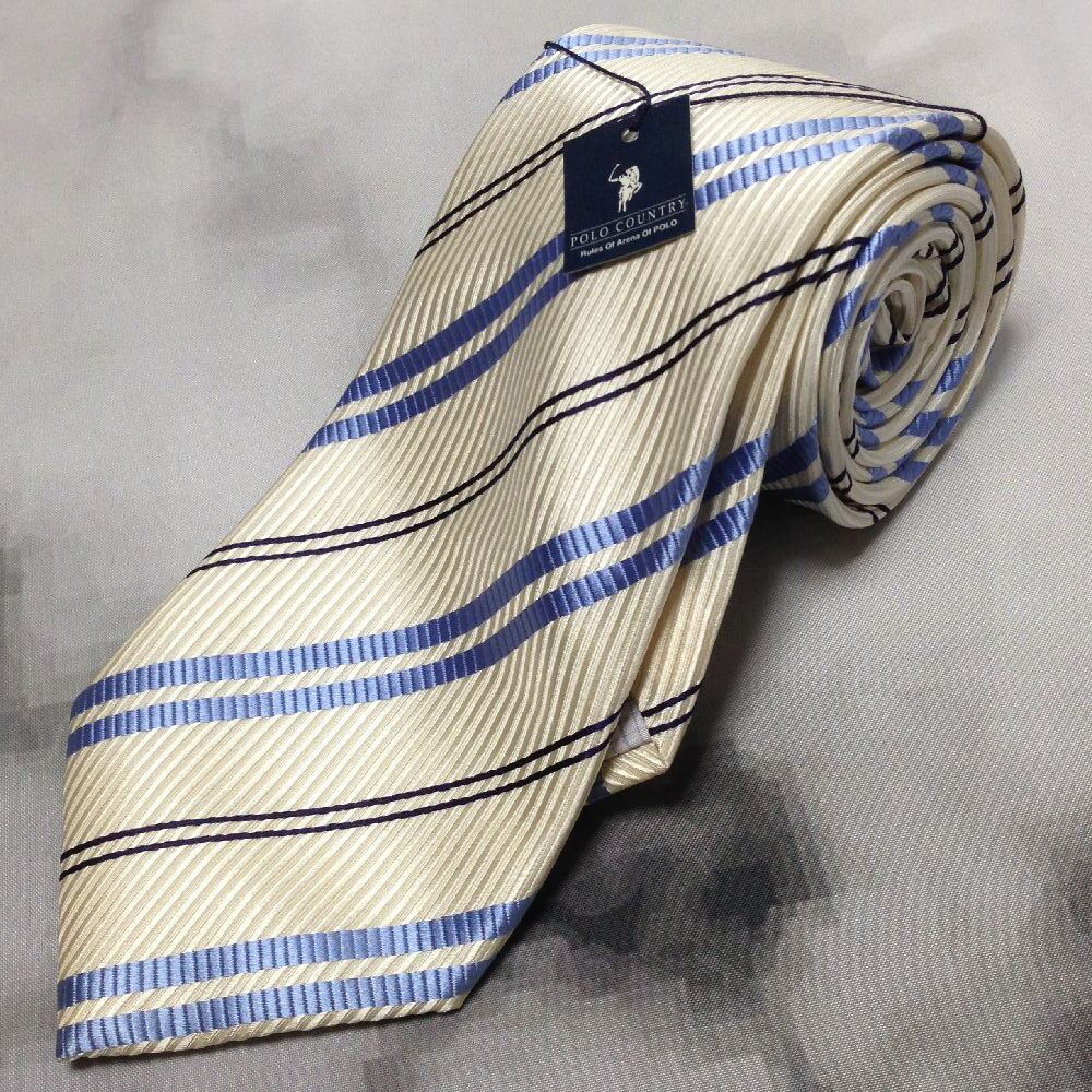 ポロ カントリー POLO COUNTRY 美品 新品未使用タグ付 微光沢 ネクタイ 斜めストライプ レジメンタル D-008546