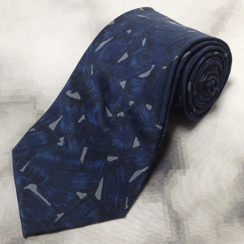 レノマ renoma 美品 未使用品 微光沢 ネクタイ イタリア製 シルク100% 総柄 濃紺系 ネイビー系 D-008553