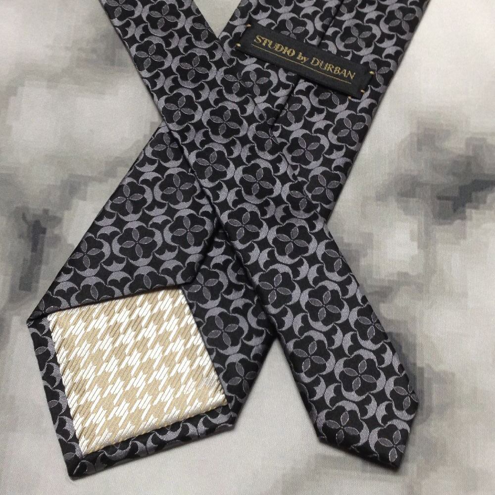 スタジオ バイ ダーバン STUDIO by DURBAN 美品 未使用品 微光沢 ネクタイ パターン柄 黒系 ブラック系 D-008555