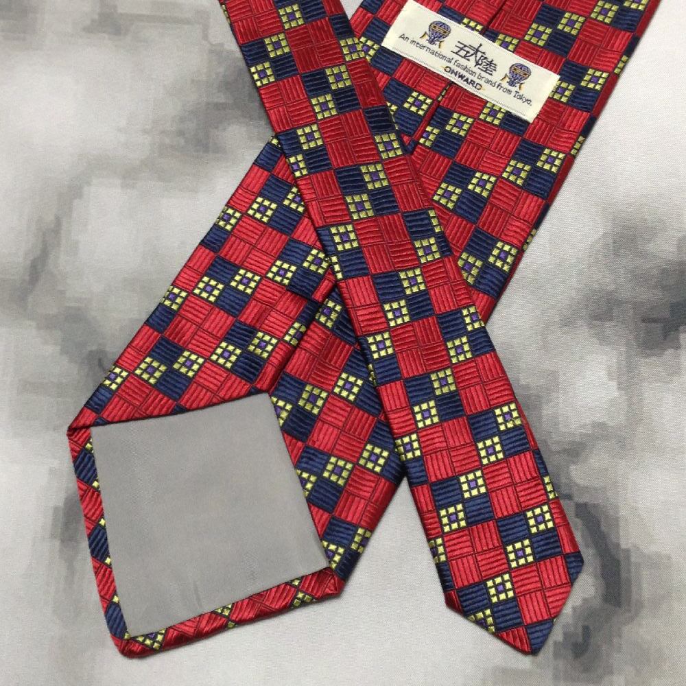五大陸 gotairiku 美品 微光沢 ネクタイ パターン柄 レッド系 赤系 D-008556