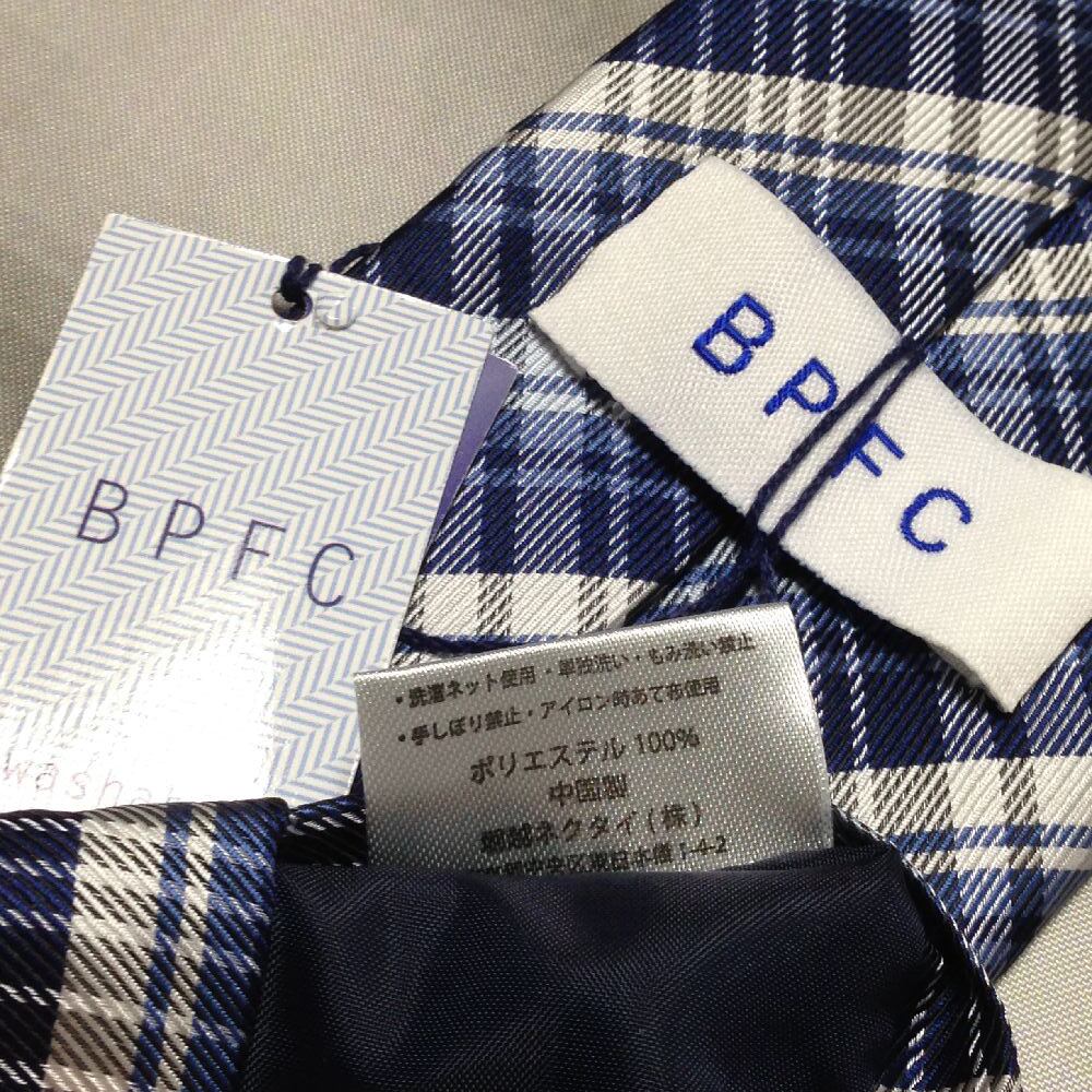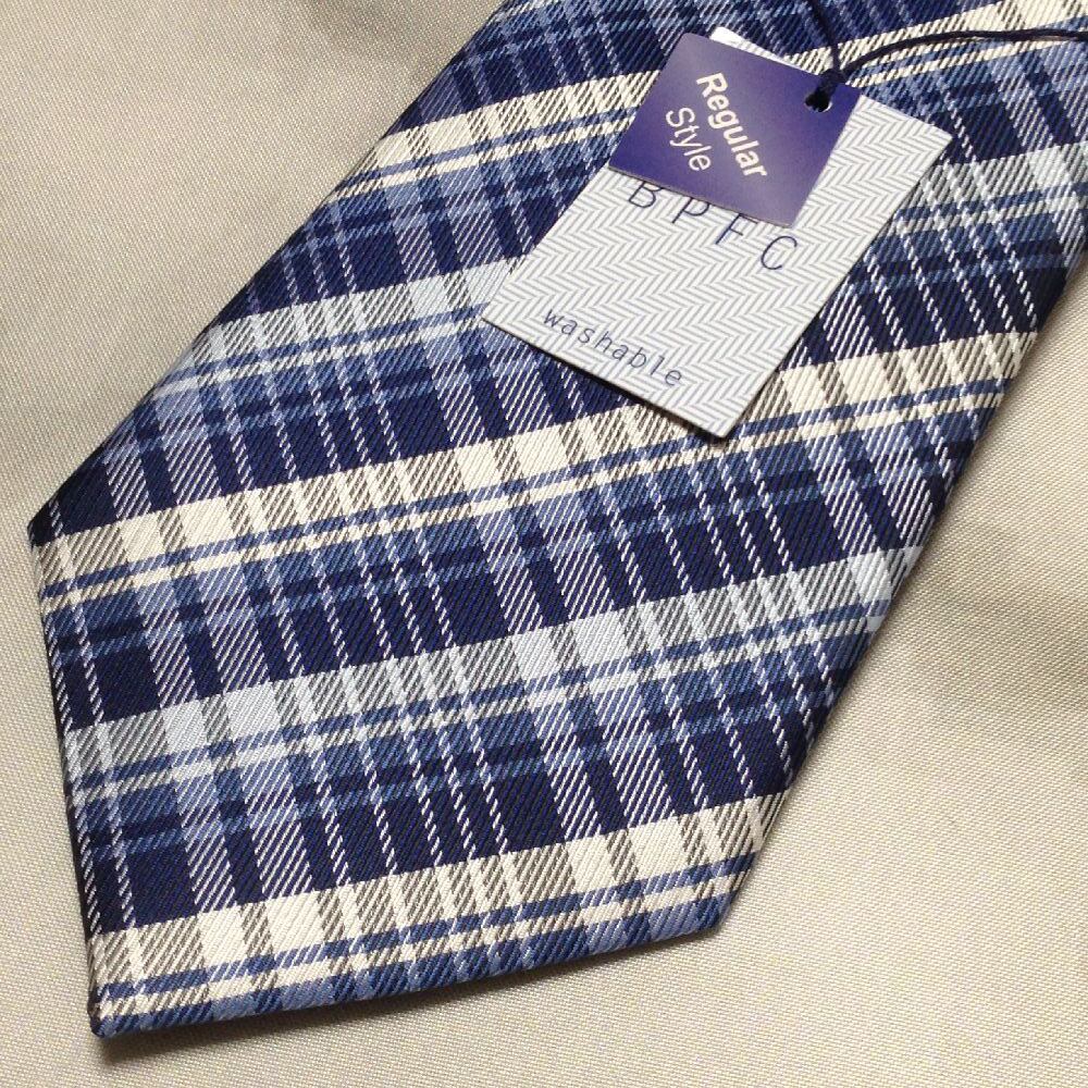BPFC 美品 新品未使用タグ付 微光沢 ネクタイ ポリエステル100% チェック柄 濃紺系 ネイビー系 D-008578