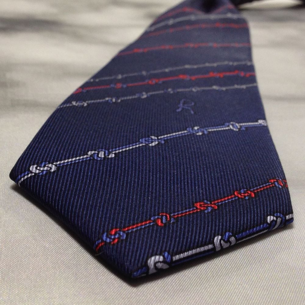 ロベルタ ディ カメリーノ ROBERTA DI CAMERINO 美品 未使用品 微光沢 ネクタイ 縄柄 濃紺系 ネイビー系 D-008584