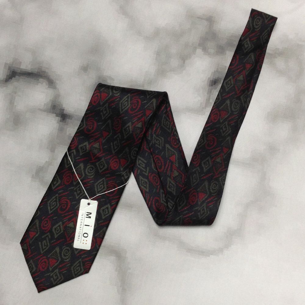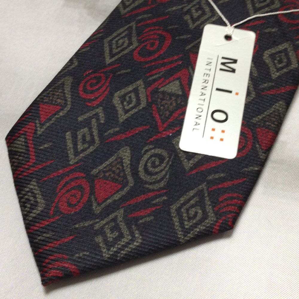 MIO 美品 新品未使用タグ付 微光沢 ネクタイ シルク100% パターン柄 ミックス D-008599