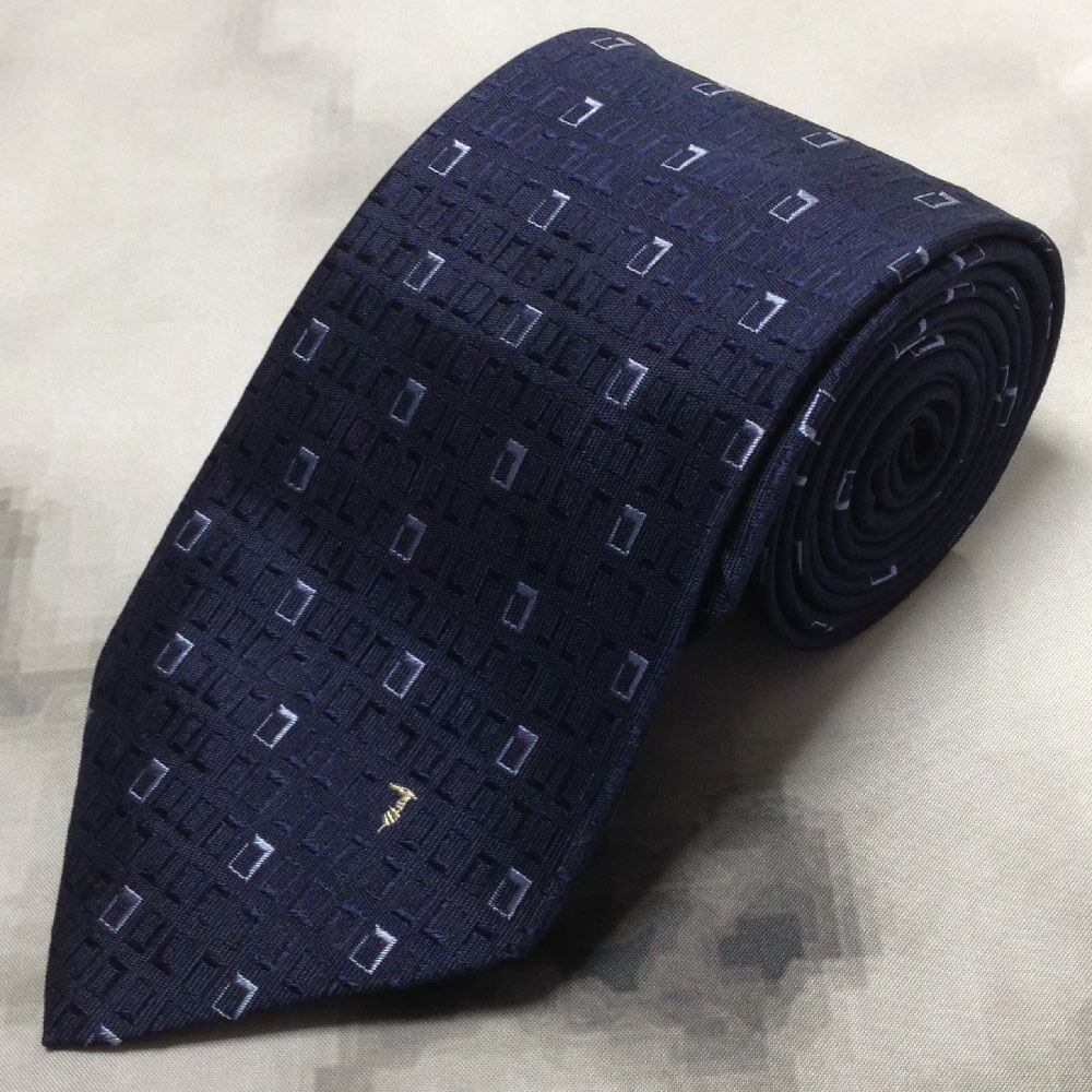 トラサルディ TRUSSARDI 美品 微光沢 ネクタイ イタリア製 シルク100% パターン柄 濃紺系 ネイビー系 D-008603