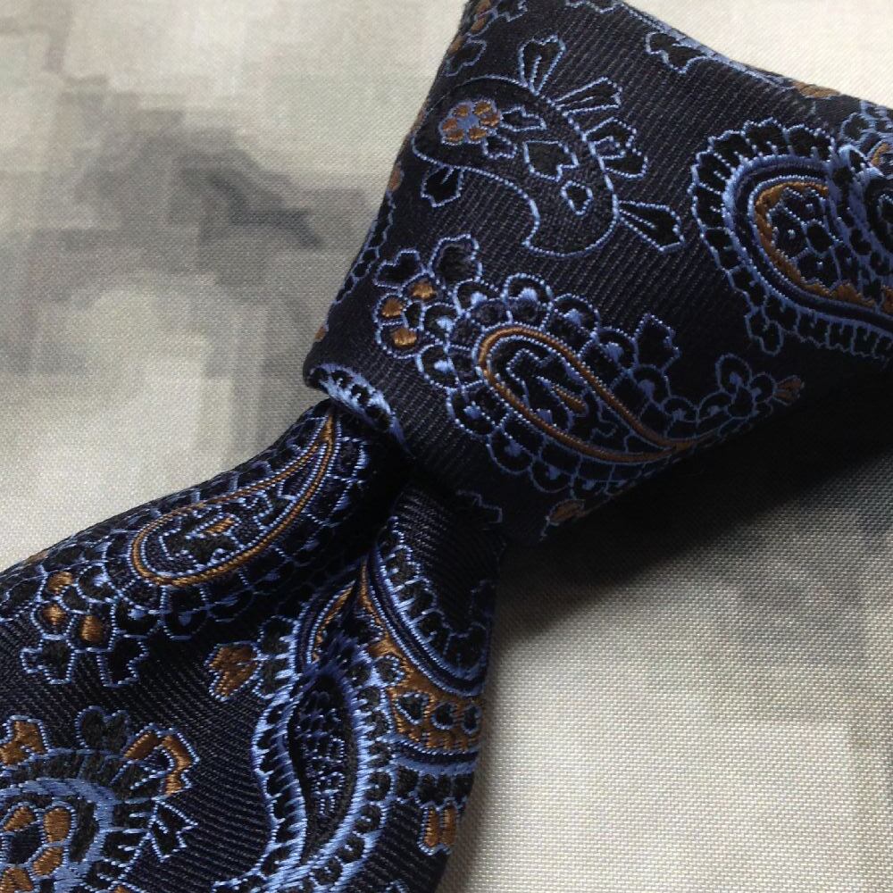 鎌倉シャツ メーカーズシャツ鎌倉 Makers Shirt 美品 未使用品 微光沢 ネクタイ ペイズリー柄 ネイビー系 D-008610
