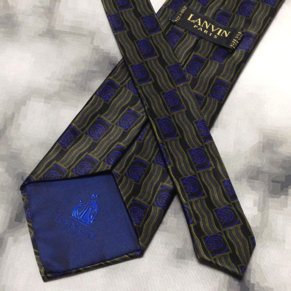ランバン LANVIN 美品 未使用品 微光沢 ネクタイ フランス製 シルク100% パターン柄 ミックス E-008621