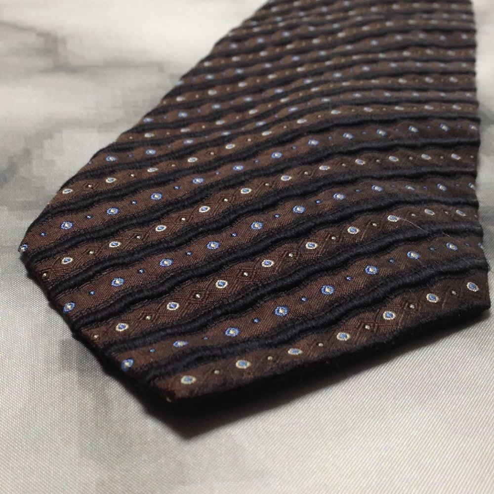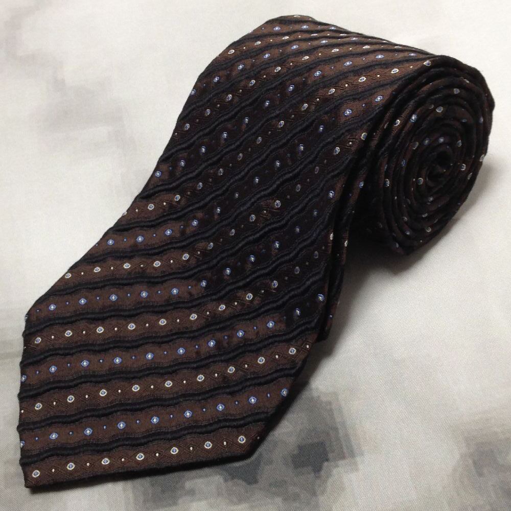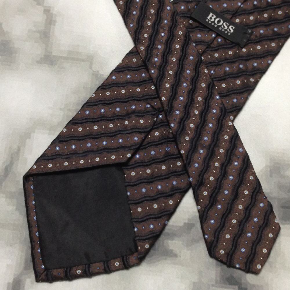 ヒューゴ ボス hugo BOSS 美品 微光沢 ネクタイ イタリア製 シルク100% パターン柄 茶系 ブラウン系 D-008558
