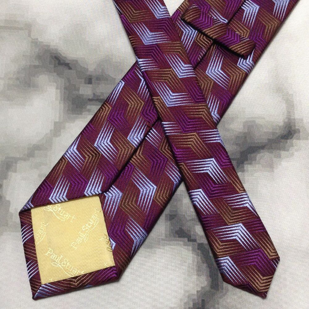 ポール スチュアート Paul Stuart 美品 微光沢 ネクタイ シルク100% パターン柄 ミックス D-008559