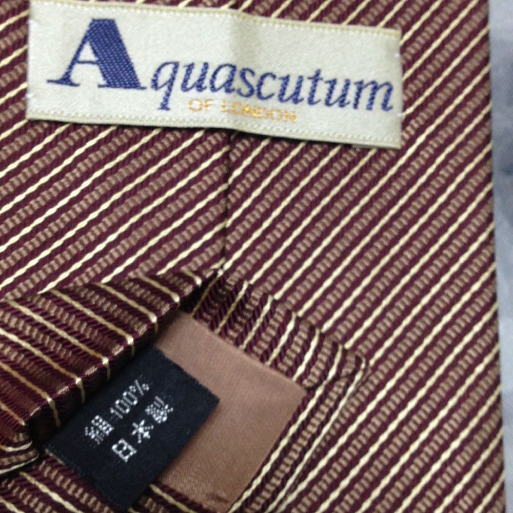 アクアスキュータム Aquascutum 美品 微光沢 ネクタイ 斜めストライプ レジメンタル 茶系 ブラウン系 D-008561