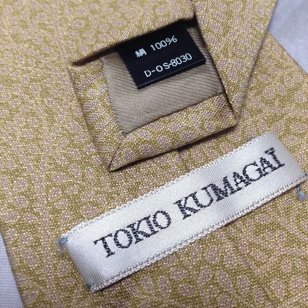 熊谷登喜夫 TOKIO KUMAGAI 美品 未使用品 微光沢 ネクタイ シルク100% 植物柄 茶系 ブラウン系 E-008637