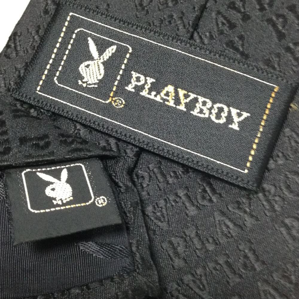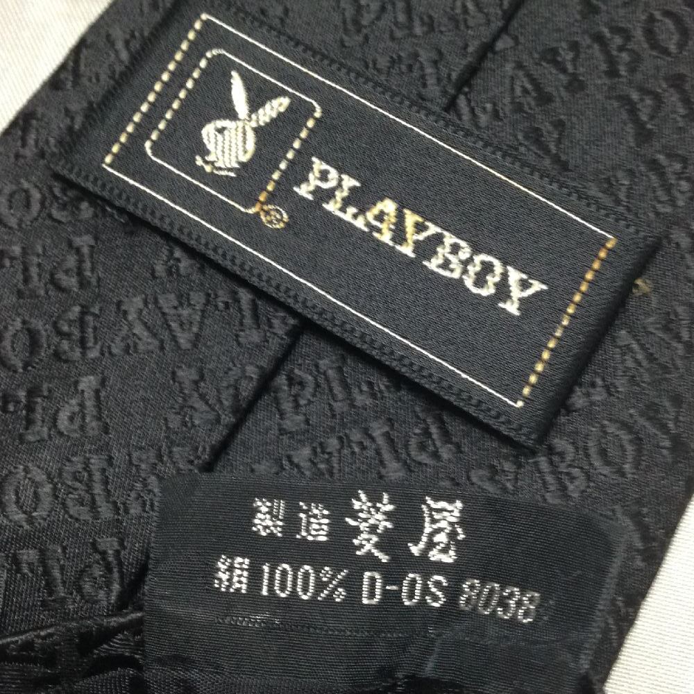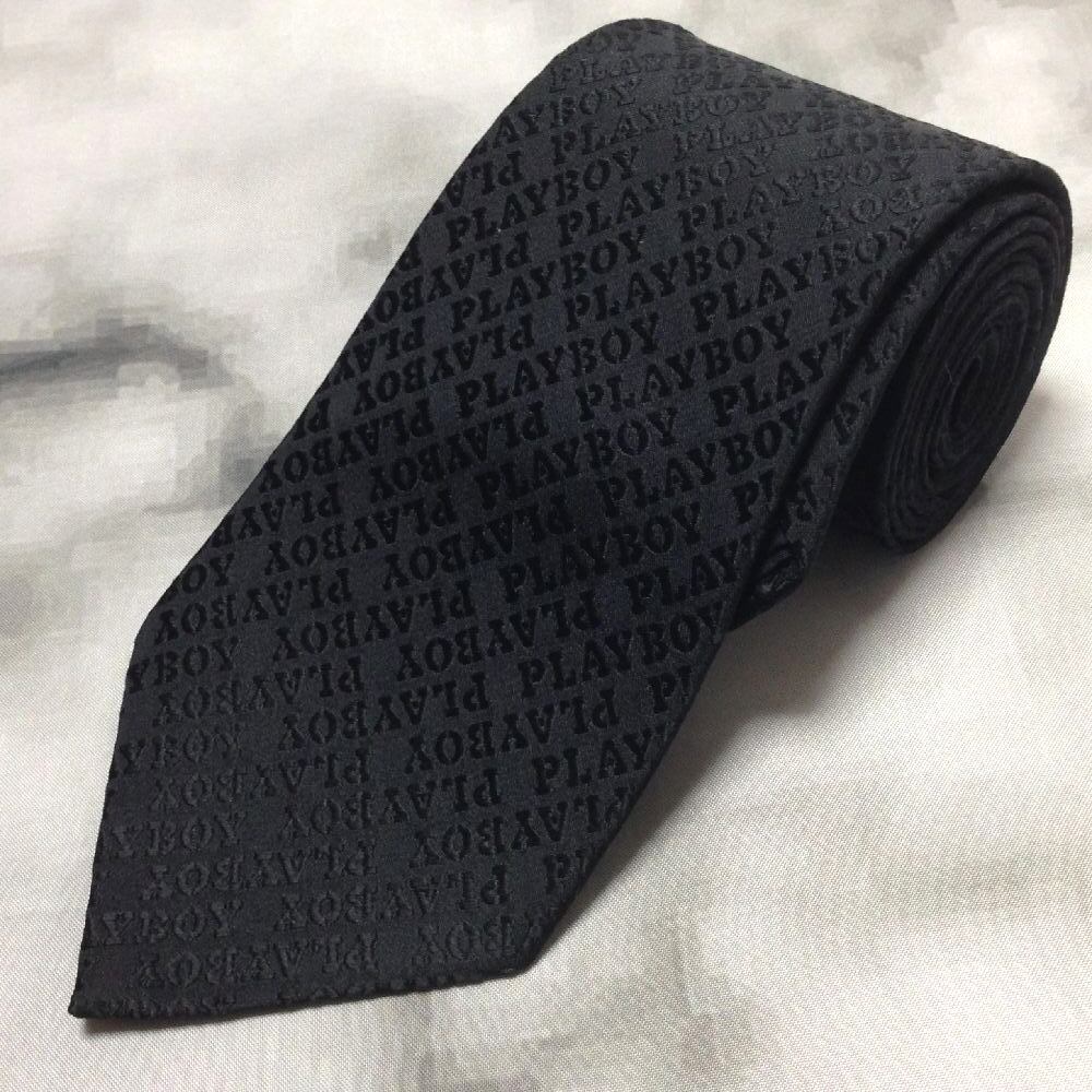 プレイボーイ PLAYBOY 微光沢 ネクタイ シルク100% ブランドロゴ柄 黒系 ブラック系 E-008647