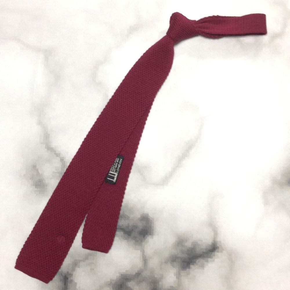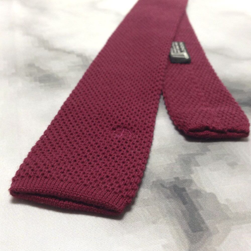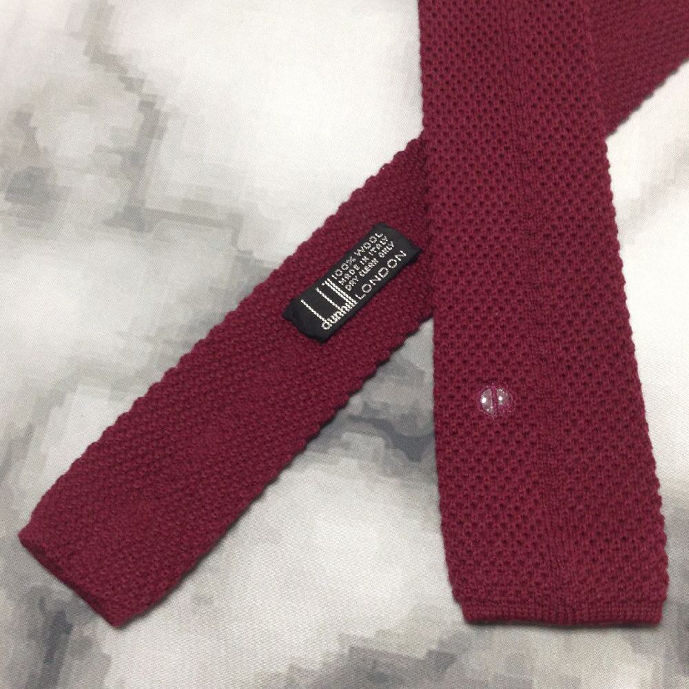 ダンヒル dunhill 美品 ネクタイ ウール100% ニット スクエア タイ ナロータイ ワインレッド系 赤系 F-008650