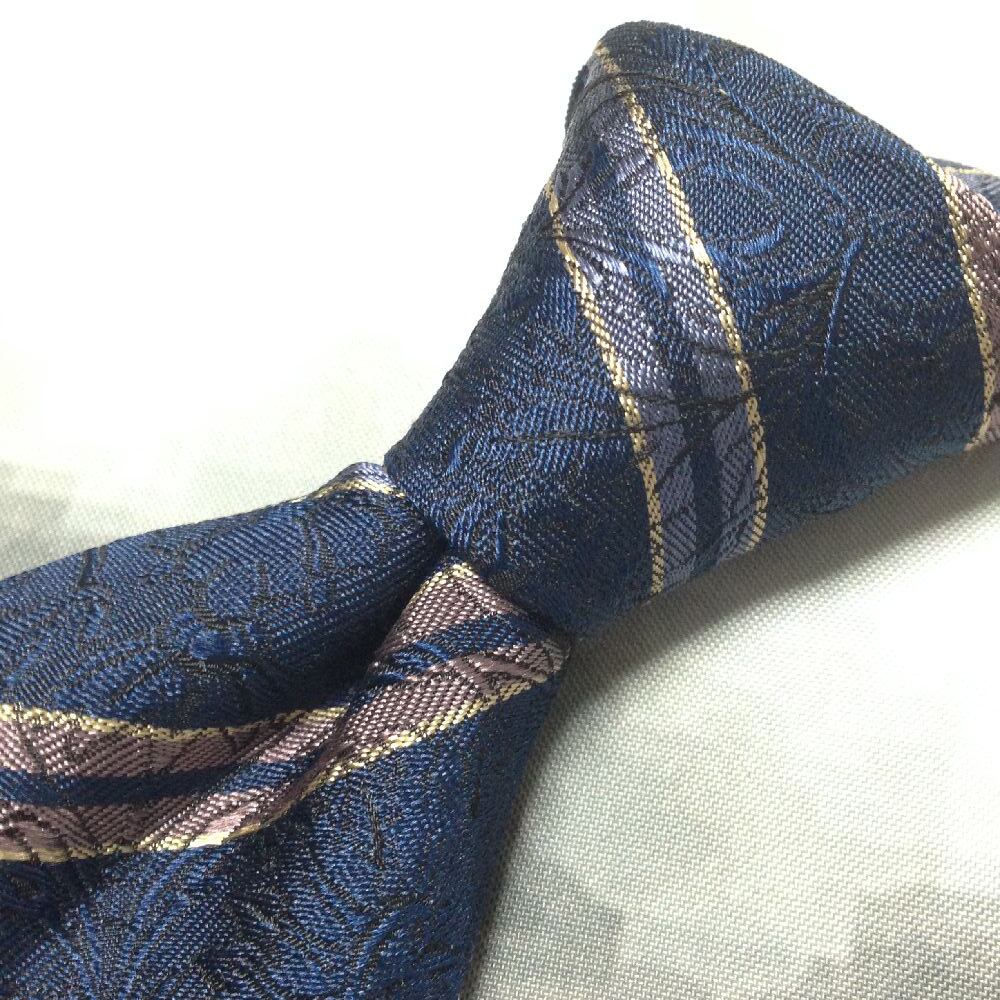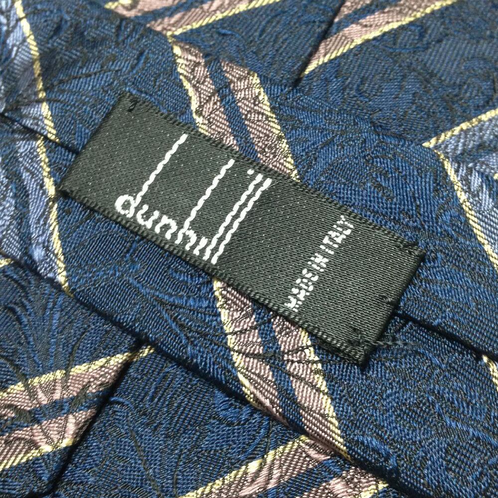 ダンヒル dunhill 美品 未使用品 微光沢 ネクタイ 斜めストライプ レジメンタル 濃紺系 ネイビー系 F-008651