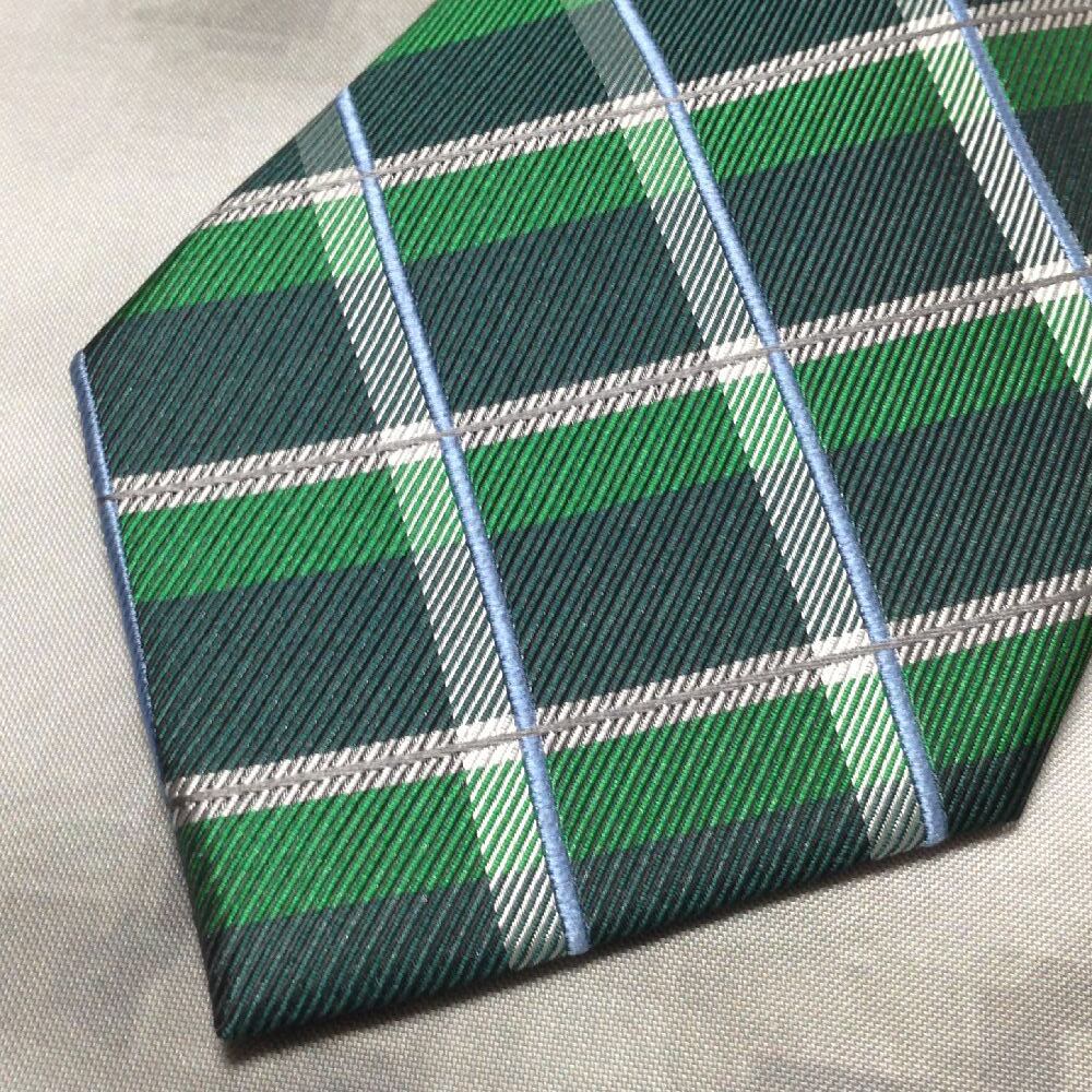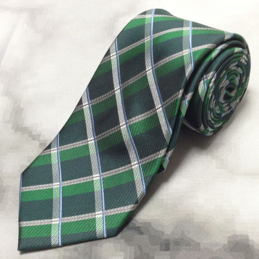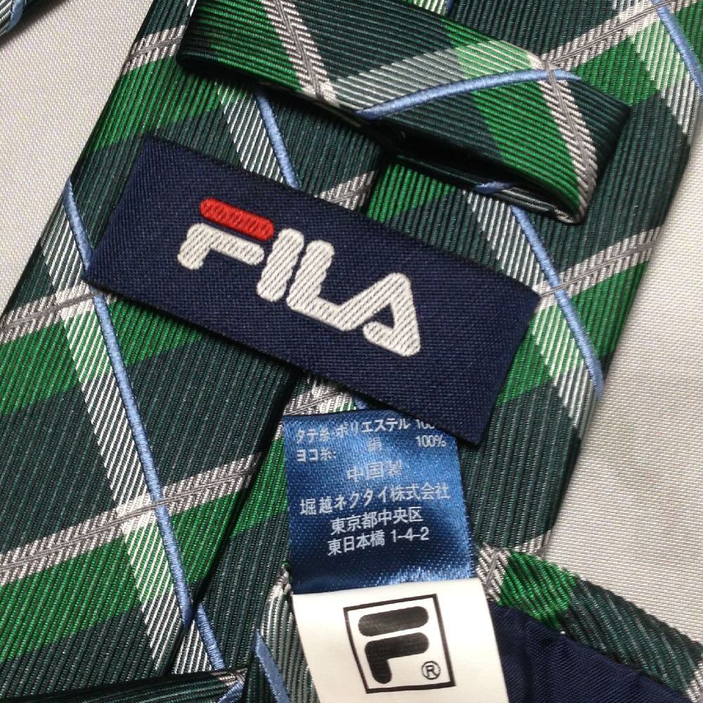 フィラ FILA 美品 未使用品 微光沢 ネクタイ チェック柄 緑系 グリーン系 F-008669