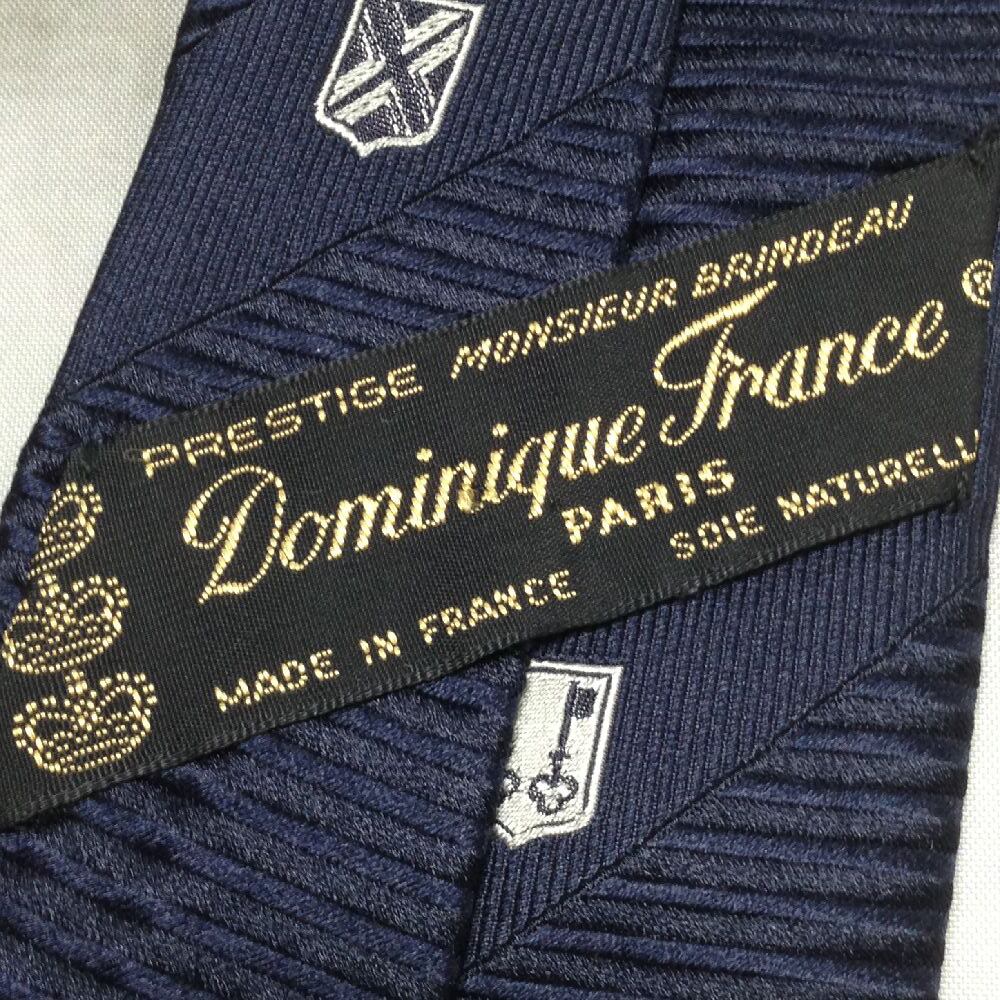 ドミニクフランス Dominique France 良品 微光沢 ネクタイ シルク エンブレム柄 濃紺系 ネイビー系 F-008686