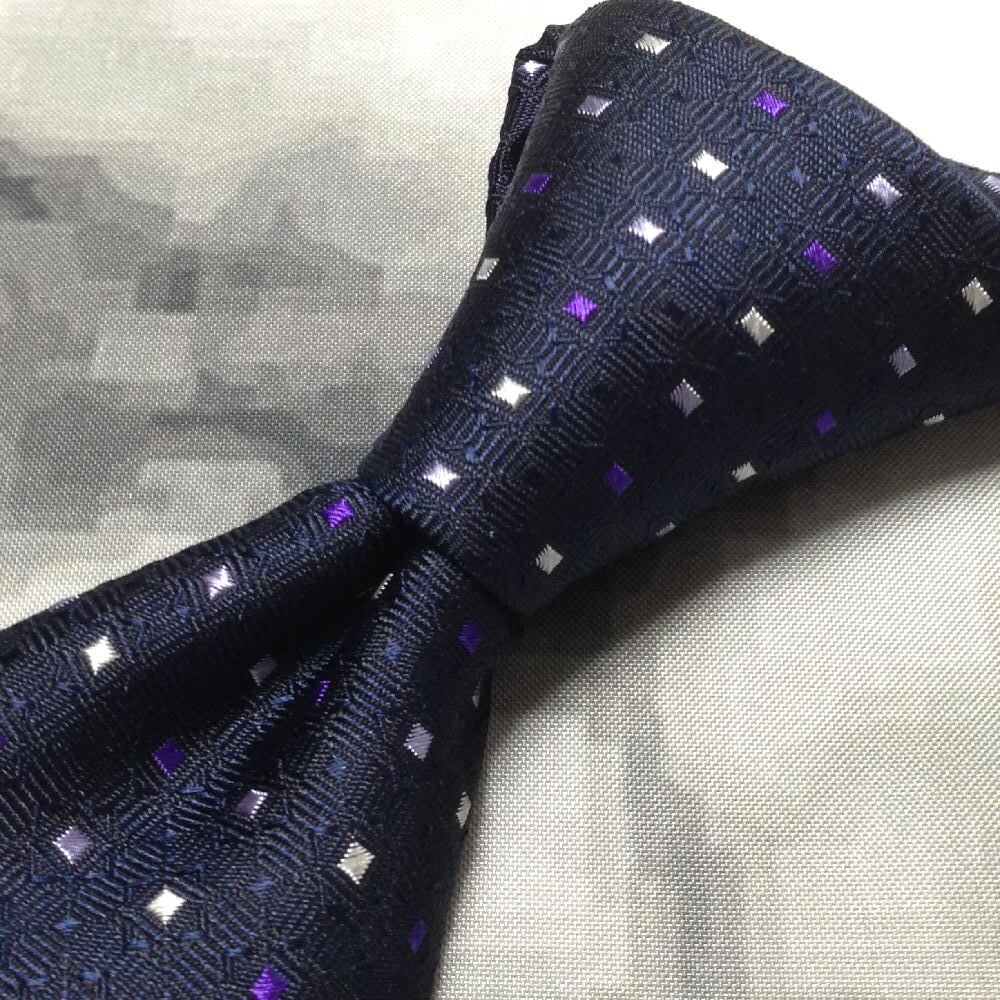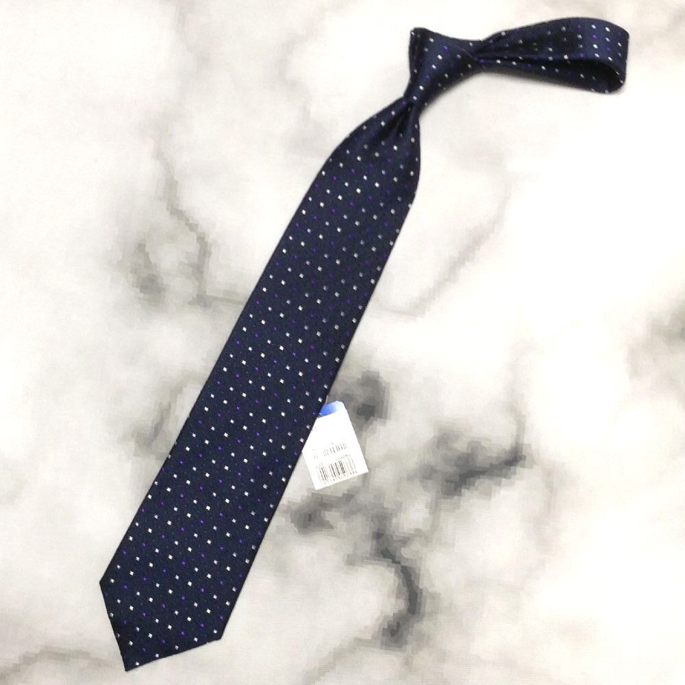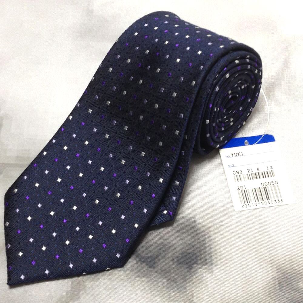 ユキトリイ YUKI TORII 美品 新品未使用タグ付 微光沢 ネクタイ ブロックドット柄 濃紺系 ネイビー系 F-008694