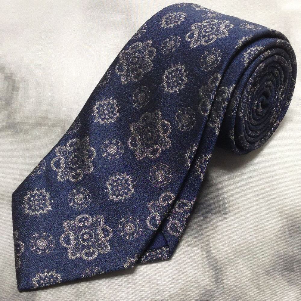 サヴィルロウ SAVILE ROW ザビルロウ 美品 未使用品 微光沢 ネクタイ パターン柄 濃紺系 ネイビー系 F-008695