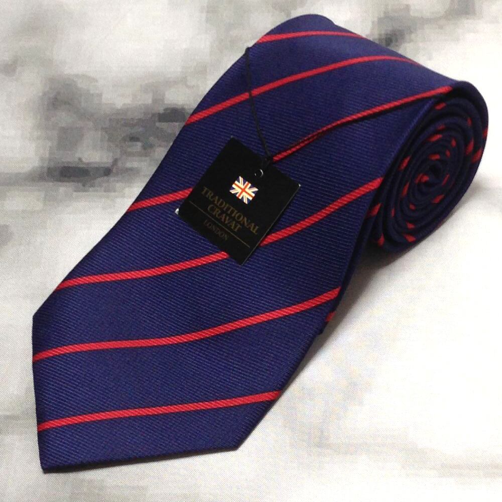 トラディショナル TORADITIONAL 美品 新品未使用タグ付 微光沢 ネクタイ 斜めストライプ 濃紺系 ネイビー系 F-008708