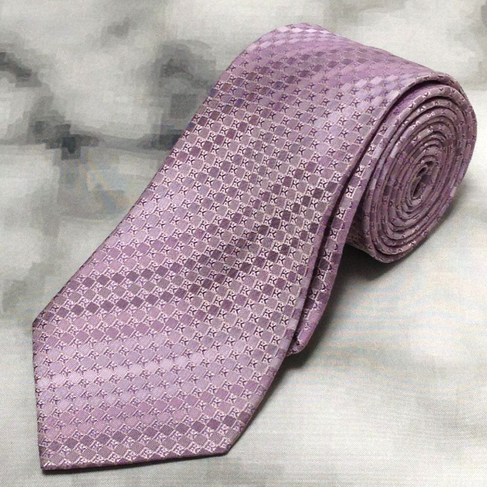 ヒロココシノ HIROKO KOSHINO オム 美品 未使用品 微光沢 ネクタイ シルク100% ブランドロゴパターン柄 F-008711