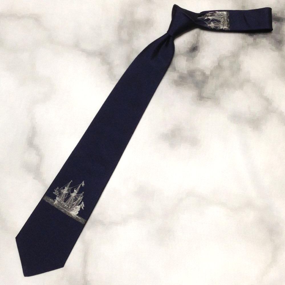ドミニクフランス Dominique France 微光沢 ネクタイ フランス製 シルク 船 シップ 濃紺系 ネイビー系 G-008714