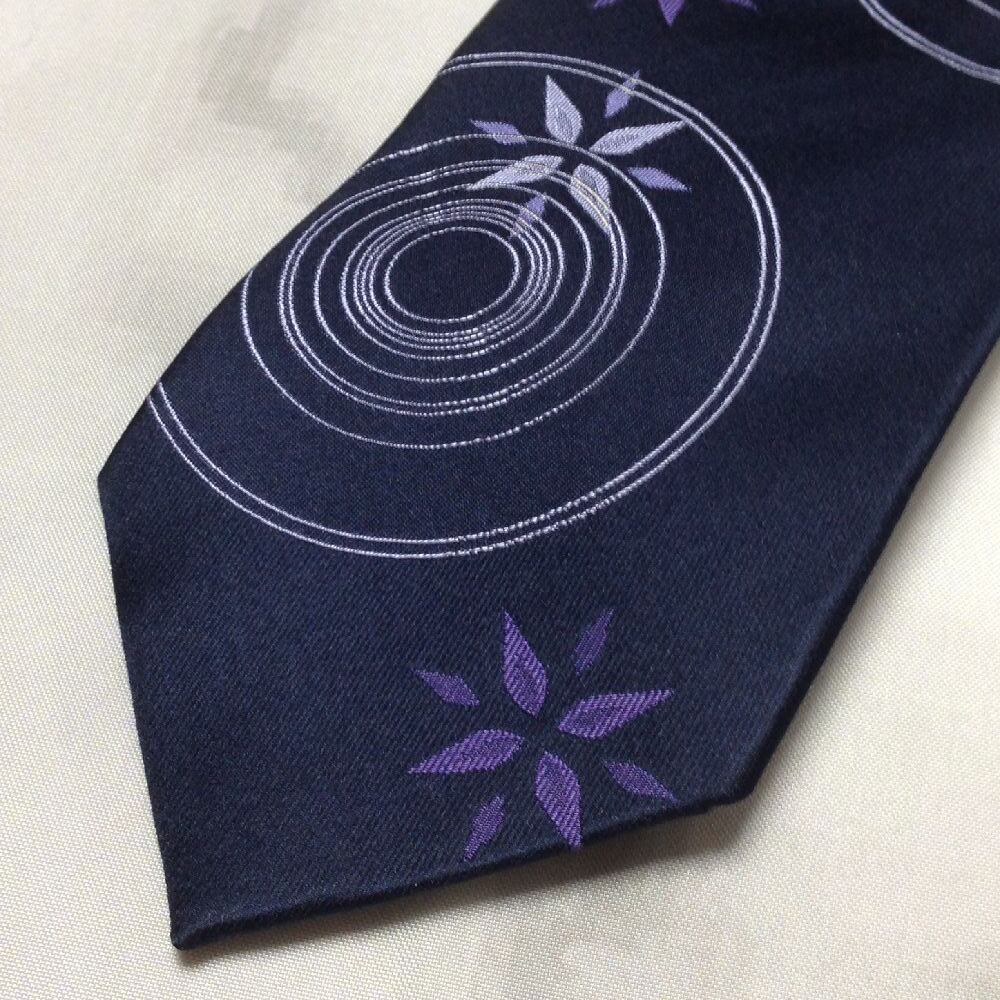 ピエールカルダン pierre cardin 美品 微光沢 ネクタイ シルク100% パターン柄 濃紺系 ネイビー系 G-008733