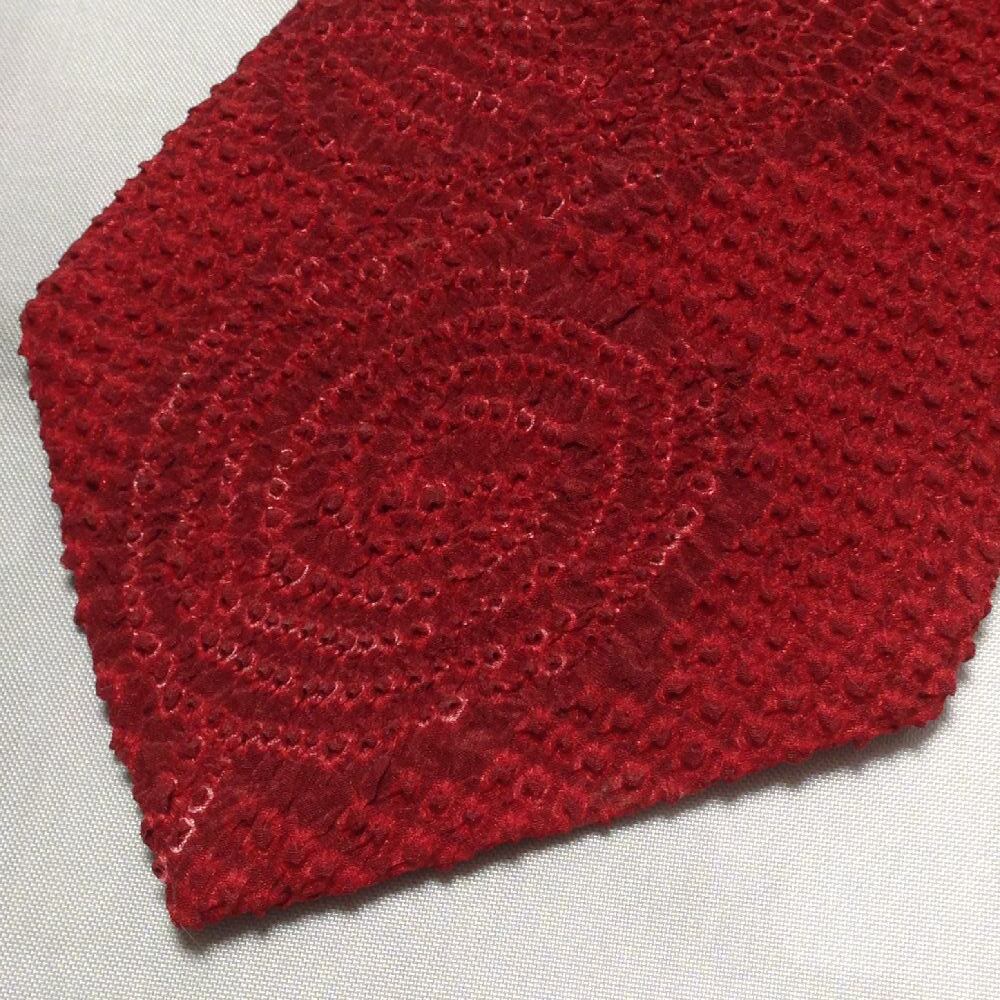 最高級伝統工芸品 手しぼり 手絞り 美品 新品未使用タグ付 微光沢 ネクタイ 植物柄 ワインレッド系 赤系 G-008739