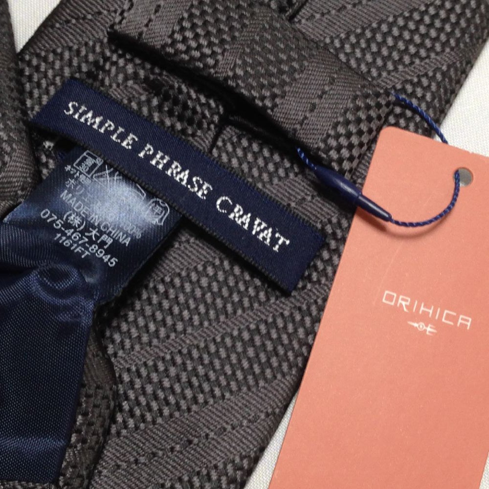 シンプルフレーズクラバット 美品 新品未使用タグ付 微光沢 ネクタイ 斜めストライプ 黒系 ブラック系 H-008749