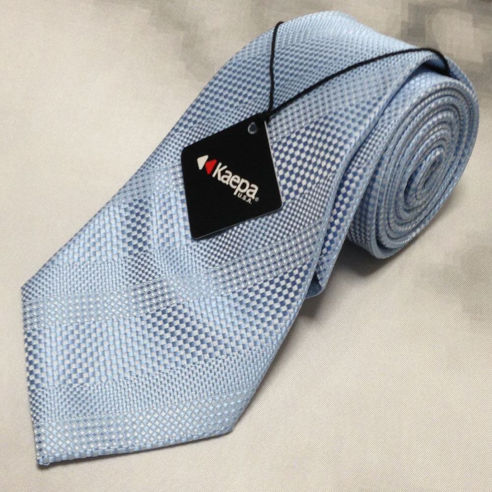 ケイパ Kaepa 美品 新品未使用タグ付 微光沢 ネクタイ ポリエステル100% パターン柄 水色系 H-008751
