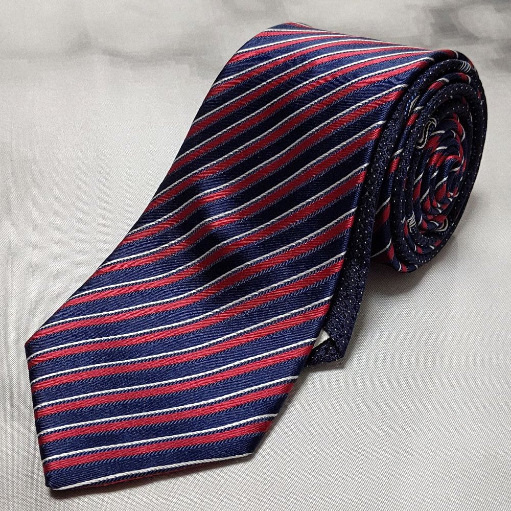 ミツミネ Mitsumine 微光沢 ネクタイ 日本製 シルク100% 斜めストライプ レジメンタル 切替 ミックス H-008763