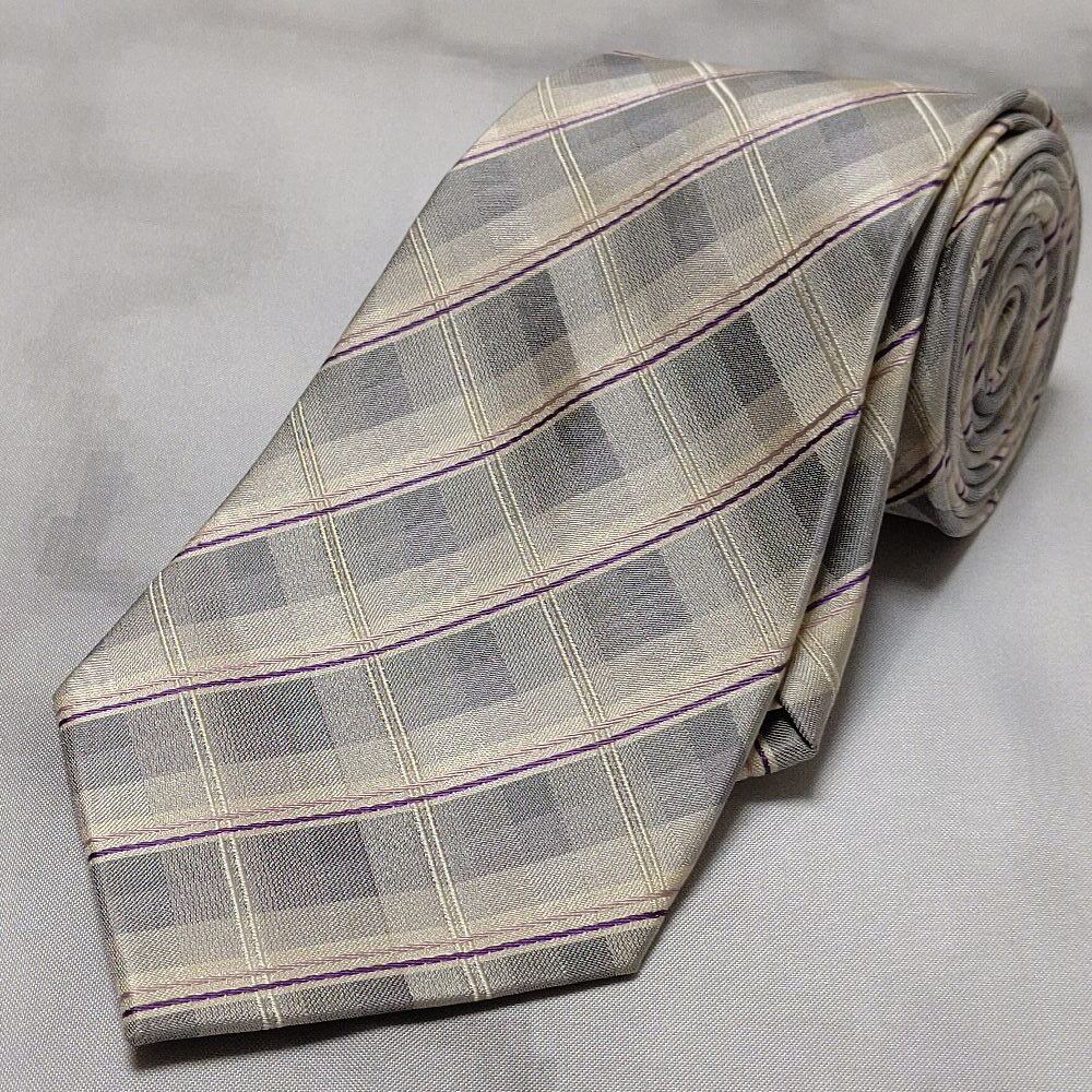 ヒロココシノ HIROKO KOSHINO オム 美品 未使用品 微光沢 ネクタイ シルク100% パターン柄 ミックス H-008765