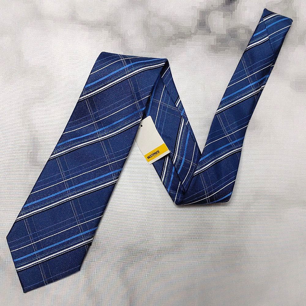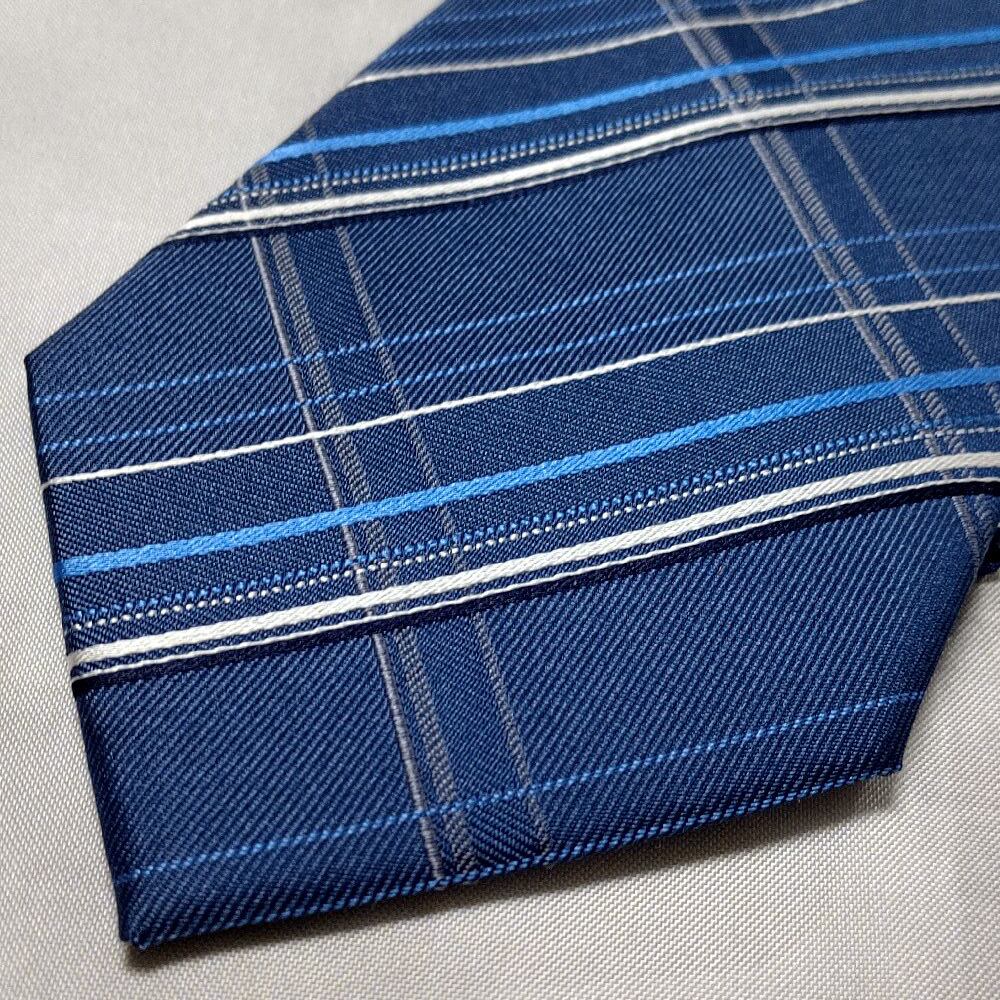イオン 美品 新品未使用タグ付 微光沢 ネクタイ シルク100% チェック柄 濃紺系 ネイビー系 G-008770