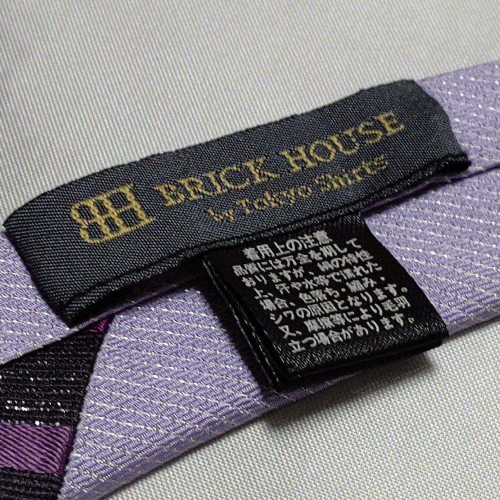 ブリックハウス BRICK HOUSE 美品 微光沢 ネクタイ 斜めストライプ レジメンタル 2way ナロータイ ミックス G-008781
