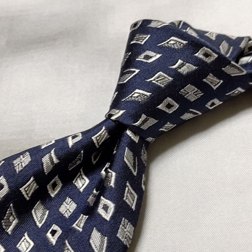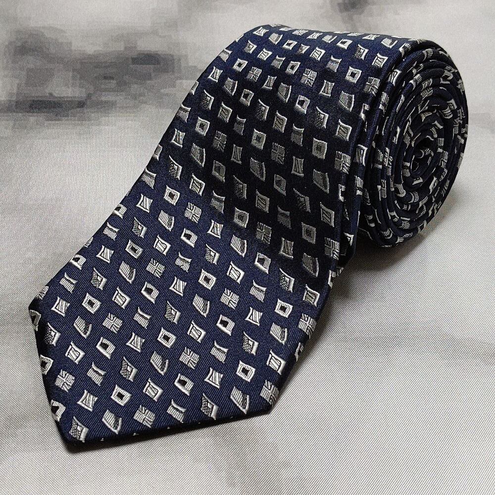 田屋 TAYA 美品 未使用品 微光沢 ネクタイ シルク100% パターン柄 濃紺系 ネイビー系 H-008802