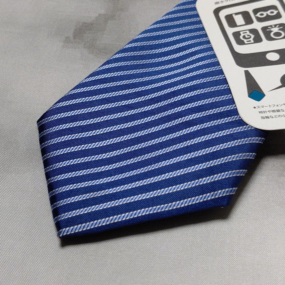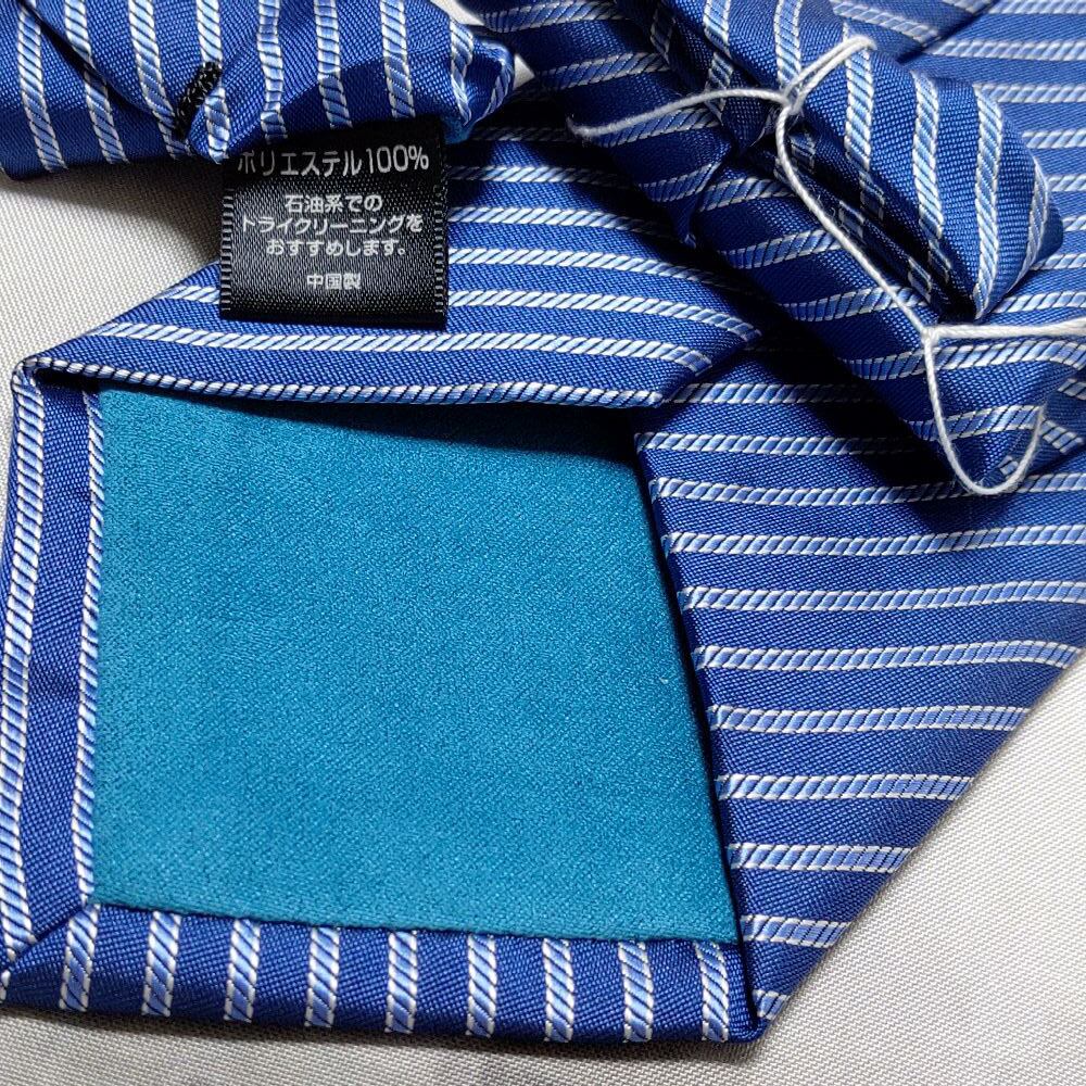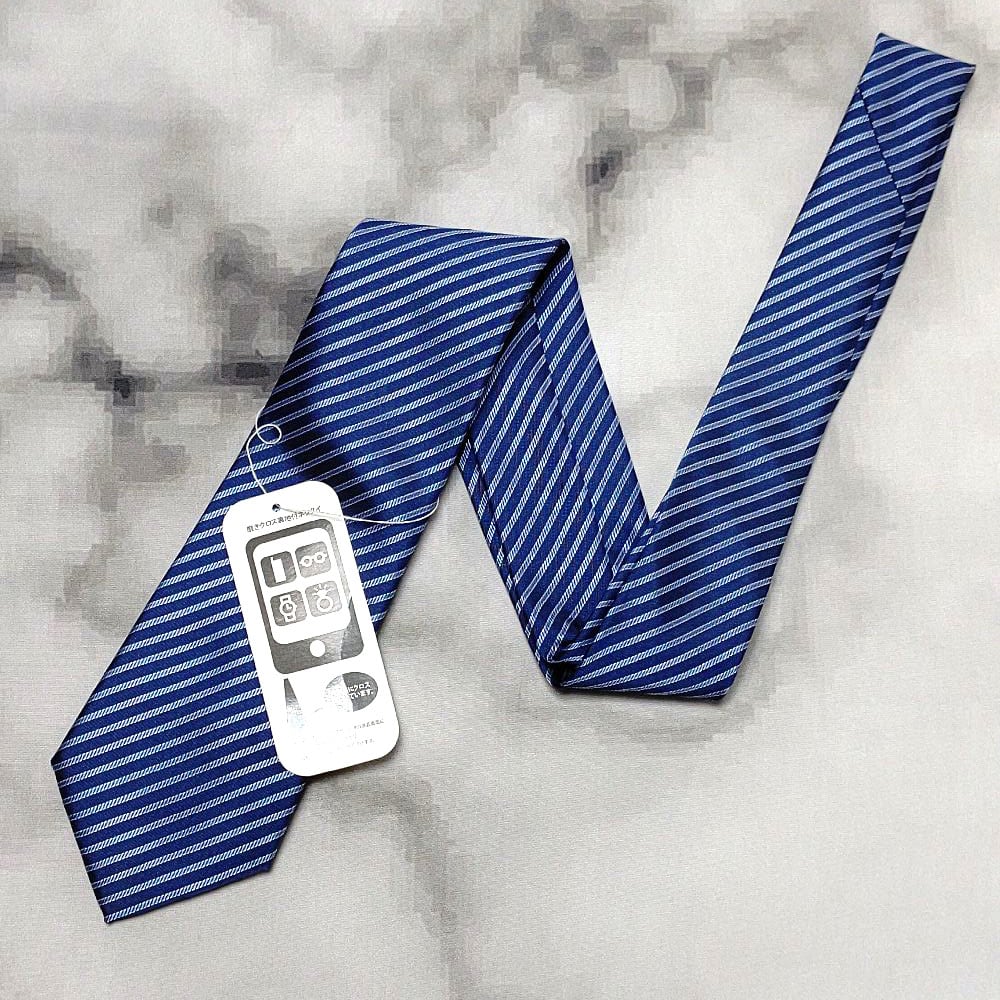 イオン AEON 美品 新品未使用タグ付 微光沢 ネクタイ 斜めストライプ レジメンタル 濃紺系 ネイビー系 H-008804